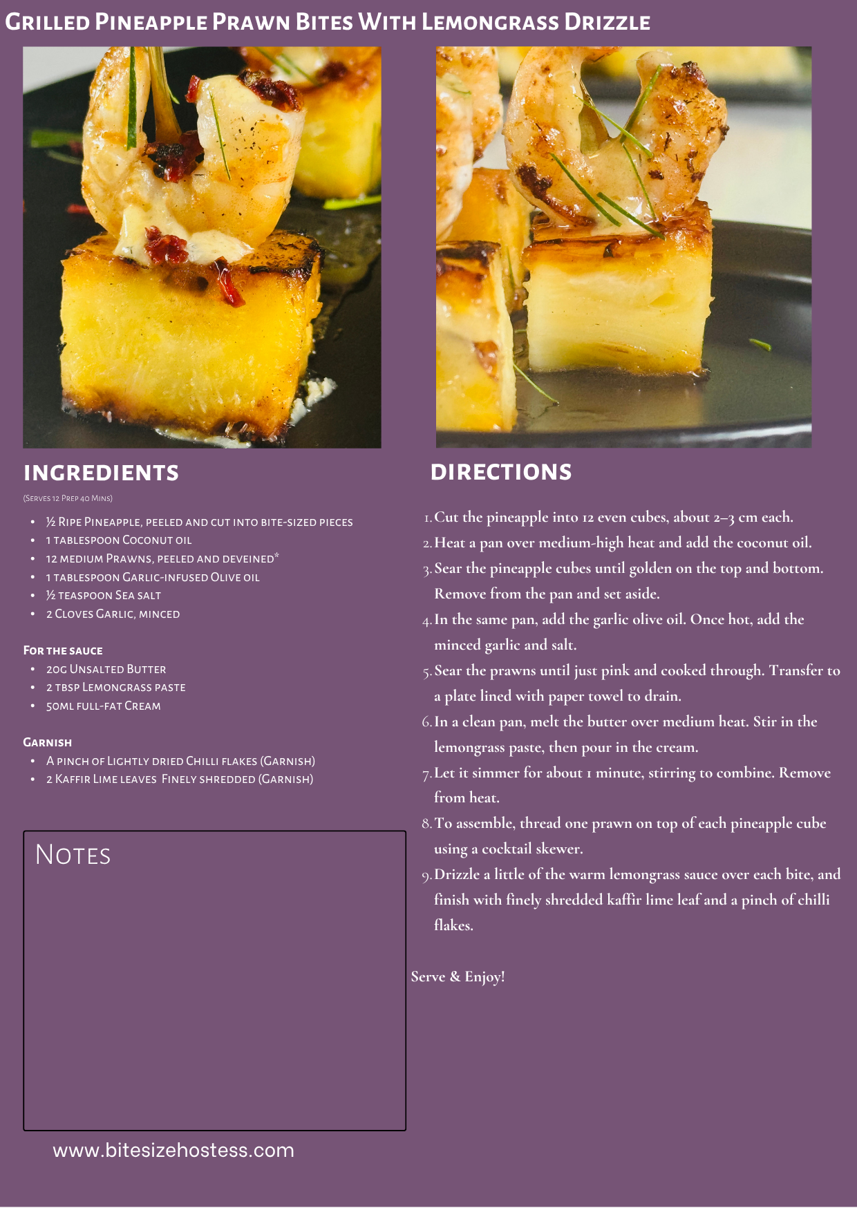 Grilled Pineapple Prawn Bites June 9, 2025June 16, 2025 FacebookTweetPin6Email Party Food Table idea: Pineapple is one of those fruits that doesn’t need to try hard & can easily elevate the party food table . It is sweet, juicy, and unapologetically distinctly tropical- the kind of ingredient that stands up for itself, even in a savoury dish. Whether served raw with a bit of bite or grilled until the edges start to caramelise, pineapple brings an energy that’s hard to ignore. Bright, juicy, and full of flavour- it wakes everything up. Right now, pineapples are in peak form here in Queensland. You can spot them piled high at markets, golden-skinned and heavy with juice. If there was ever a time to let pineapple shine on your appetiser menu, it’s now. And while pineapple works beautifully with all sorts of ingredients- think chilli, herbs, creamy cheeses- there’s one pairing that always gets the spotlight when I’m entertaining: prawns & pineapple. There’s something about the way the sweetness of the pineapple bounces off the natural saltiness of prawn that just works. It’s not fancy… it doesn’t need to be. Grill both, thread them onto little skewers, add a little lemongrass drizzle and you’ve got a combination that tastes like summer on a stick. Or…go lighter with a summer salsa. Dice the pineapple and prawns and toss with lime juice, a little chopped red chilli, some mint, coriander, kaffir lime & maybe a little avocado & spoon into crisp lettuce cups, onto crispy wonton chips or serve in small glasses. It’s juicy, fresh, and disappears fast- exactly what you want from an appetiser. Want to push it further? Add something with crunch. Cucumber, finely chopped roasted cashews, coconut flakes, red onion, jalapeño or even paper-thin radish. You’re building texture, not overcomplicating things. A little drizzle of lemongrass, sweet chilli sauce, or fish sauce, if you like that sort of thing, will nudge the whole thing into Thai-inspired territory. I have used both kaffir lime leaves & lemon grass in keeping with Thai flavours, just making a simple sauce & garnish. A subtle lemongrass aftertaste, a little hit of chilli & the freshness of kaffir lime…Yum! This is where pineapple really shows off– not just as a garnish or side note, but right at the centre. It’s sweet, yes, but layered with acidity and that almost floral edge that makes it perfect for savoury dishes. And paired with prawns, it’s all balance. No need for anything heavy- just a few bright, sharp, well-chosen ingredients and the right presentation. So if you’ve got a pineapple on the bench, don’t save it for dessert. Give it the lead role at your party food table. Lets bring that little piece of the tropics straight to the first bite. The only issue is, you’ll wish you doubled the recipe with this one. Enjoy! Grilled Pineapple Prawn Bites With Lemongrass Drizzle (Serves 12 Prep 30 Mins) You Will Need: Fresh Ripe Pineapple: Choose a pineapple that is sweet and fragrant. Peel it, remove the core, and cut it into bite-sized pieces (approximately 2–3 cm cubes). These tropical chunks bring a bright sweetness and tang that pair beautifully with the seafood. Coconut Oil: Use virgin coconut oil for a rich, slightly nutty tropical aroma. It provides a subtle flavour boost while helping to caramelise the pineapple for a crisp, golden finish. If you don’t have or don’t like coconut oil, use garlic-infused Olive oil. Medium-size Prawns: Use fresh prawns that have been peeled and deveined. Their mild, slightly sweet flavour serves as the perfect canvas for the bold seasonings. If fresh prawns are not available to you, use frozen but ensure they’re fully thawed and patted dry before cooking. You can leave the tails on or remove them, depending on the aesthetic you are looking for. Garlic-Infused Olive Oil: This oil adds a subtle layer of aromatic garlic flavour without the pungency of raw garlic. It helps in lightly searing the prawns to perfection. Sea Salt: A high-quality sea salt enhances the natural flavours of the prawns and pineapple, balancing the sweetness and savoury elements of the dish. Minced Garlic Cloves: Freshly minced garlic will impart a robust and slightly spicy kick as it cooks, infusing the dish with a deep, savoury base. For the Lemongrass Cream Sauce Unsalted Butter: Unsalted butter provides a smooth, creamy base for the sauce, allowing you to control the salt level while enriching the overall flavour. Lemongrass Paste: This concentrated paste brings the unique, citrusy fragrance of lemongrass, adding an aromatic, slightly tangy zest to the cream sauce. It complements both the prawns and pineapple superbly. I buy the Gourmet Garden tubes in the refrigerator fresh produce section at the supermarket. Great in curries as well. Full-Fat Cream: Opt for full-fat cream to add a luxurious, velvety texture to the sauce. Its richness helps balance the acidity from the pineapple and the brightness of the lemongrass. Garnish Kaffir Lime Leaves: Finely shred these aromatic leaves to garnish the dish. Their citrus notes enhance the overall freshness and provide a striking contrast to the creamy sauce & that little touch of Asian cuisine. Lightly dried Chilli Flakes: A light sprinkle of lightly dried chilli flakes adds a subtle heat and a touch of colour, perfect for balancing the rich and creamy elements with a slight kick. Also available from the refrigerator fresh produce section at the supermarket. Instructions: Prepare the Pineapple: Start by cutting the peeled pineapple into 12 even-sized cubes, roughly 2–3 cm each. Aim for uniform pieces so they sear evenly and sit neatly when skewered with the prawns. Caramelise the Pineapple: Heat a large non-stick or cast-iron pan over medium-high heat. Add the coconut oil and allow it to melt and coat the pan. Carefully place the pineapple cubes into the pan, flat side down. Let them sear without moving for 1–2 minutes, or until golden and sli